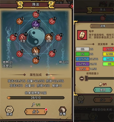 八门金锁阵的核心属性涵盖攻击、防御、敏捷、血量、法术与抗性。这些属性能够借助培养和升级得以强化。玩家可通过消耗资源来提升阵法等级,进而获取更显著的属性增益。