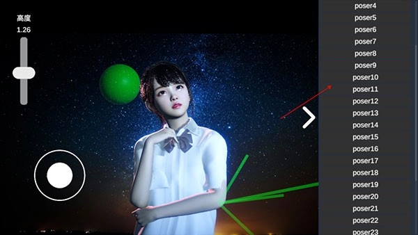 姿态库内有数十种免费可用的POSE,点击对应的pose,左侧模特便会呈现相应动作。