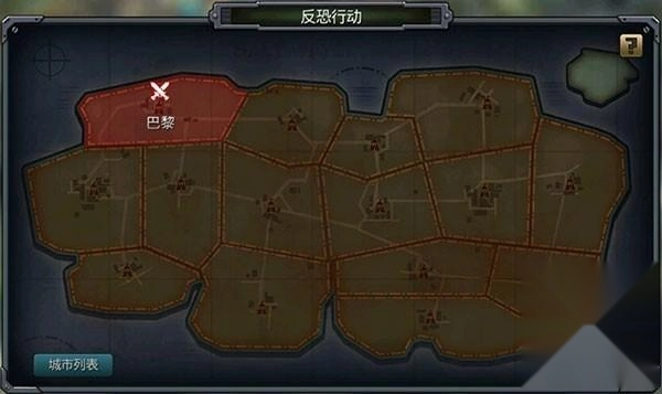 2、城市分布与跳转:城市分布于大地图内,借助反恐行动界面可快速跳转到各个城市。达成条件后就能发起攻击,当前城市恢复和平状态后,下一个城市才会解锁开启。
