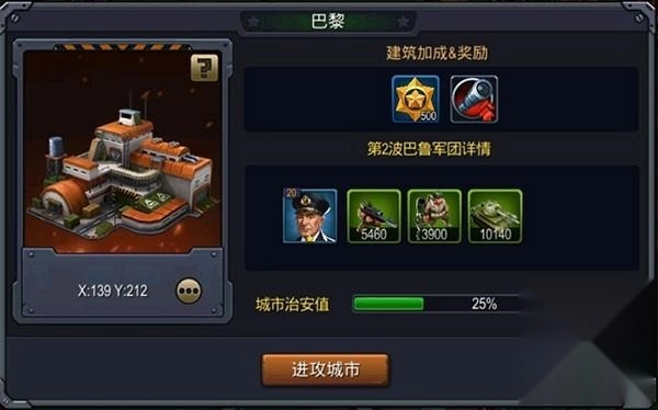 3、击败部队与治安值,城市里有多支需要逐个击败的部队。成功击败后,城市的治安值会提升,当治安值达到100%时,城市就会恢复和平状态。