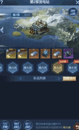 组队闯关玩法,共10章,每章10关,指挥官65级后开启,如玩家队伍是第一个通关次关卡的队伍,则会获得全服首通的丰厚奖励。协助其他玩家通关可获得协助奖励,每天最多10次,每次协助可获得100协助点,协助点可在协助商店购买物品。通关对应的关卡后,物资商店会开放购买超值商品。