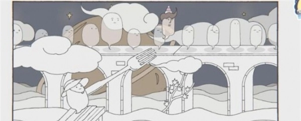1、成就1-叉子:玩家掉入水中,向后漂泊会被叉子丢回桥上。