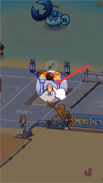 1、玩家进入游戏后,根据指示点击指标位置对小兵进行升级。