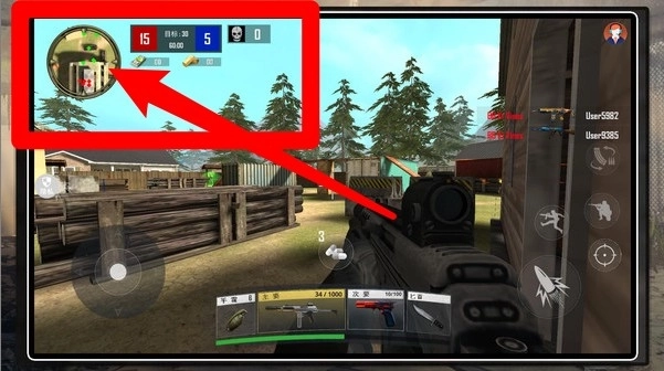 2.上方小地图实时显示敌我双方位置与比分,帮助玩家迅速判断战局走向并制定最佳战术策略。