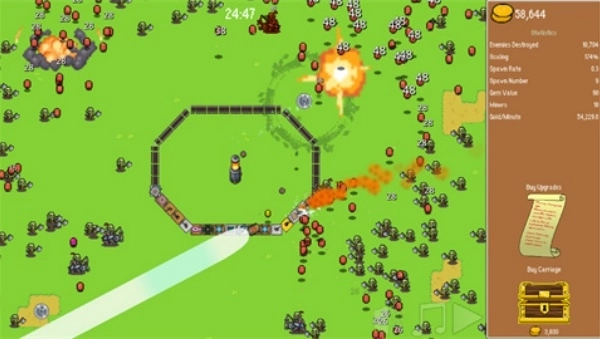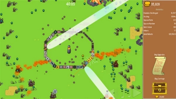 火车突袭放置塔防是一款以火车为主题元素制作而成的策略塔防闯关游戏,游戏里玩家要在火车上放置各种防御设施来和敌人进行战斗,面对不断汹涌而来的敌人,大家可以利用好火车可以移动的能力来进行部署。