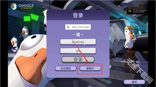 1、打开鹅鸭杀后,点击“新账户”,