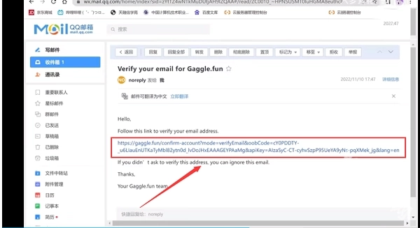 4、进入邮箱,打开链接进行核实,