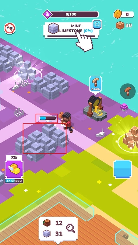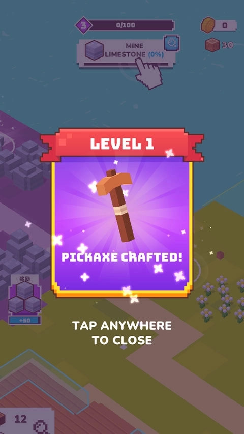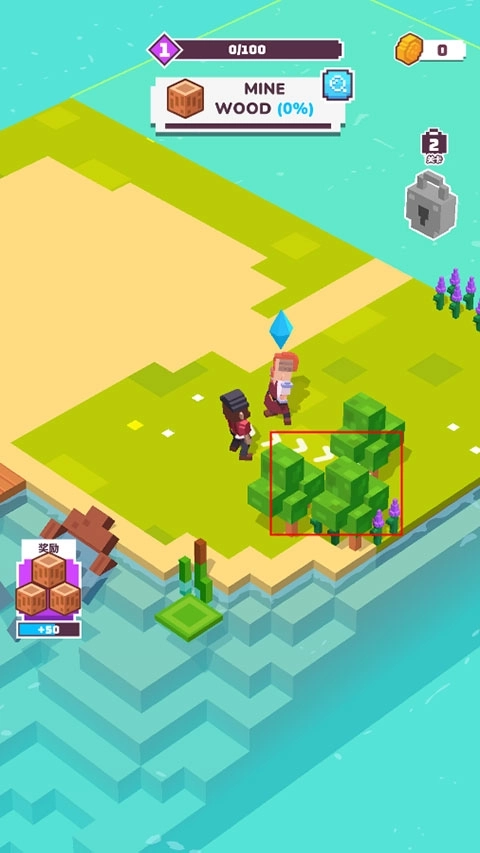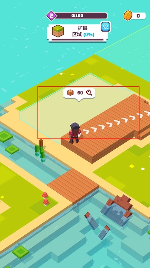4、达成一个小目标后,会获得区域扩展的奖励,我们得砍伐更多树木来进行建造;