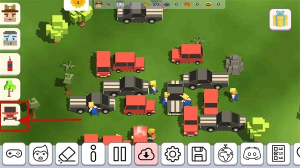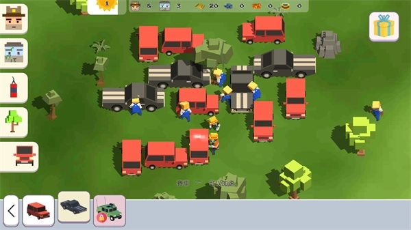 3、选好车辆后,下方会出现一行小字,显示当前车辆的属性。例如小编选的赛车带有加速功能,点击图里任意位置,就能把车布置在地图上啦!