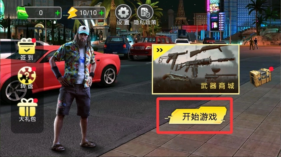 1、进入游戏后点击开始冒险按钮,系统会加载城市地图并放置初始角色,准备开启你的侠盗生涯。首次游玩建议先完成教学关卡。