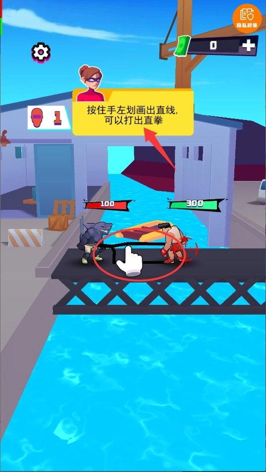 1、开局要快速熟悉画线操作,通过向不同方向滑动屏幕来发动连招,掌握基础的拳脚组合,以此压制对手的进攻节奏。