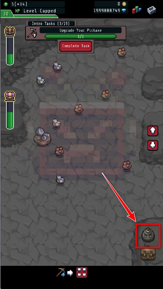 任选一个炸弹,点击这个按键,就可以炸掉矿物。