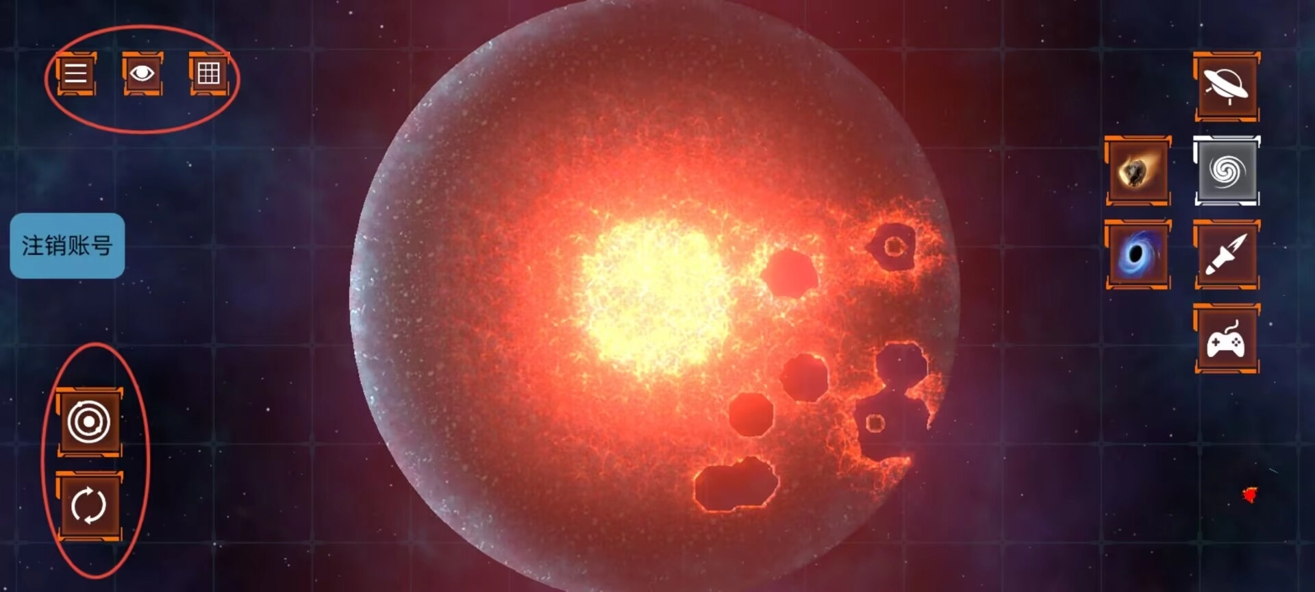 1、游戏界面左上角设有暂停功能与隐藏菜单选项,左下角重置按钮可恢复初始场景状态。