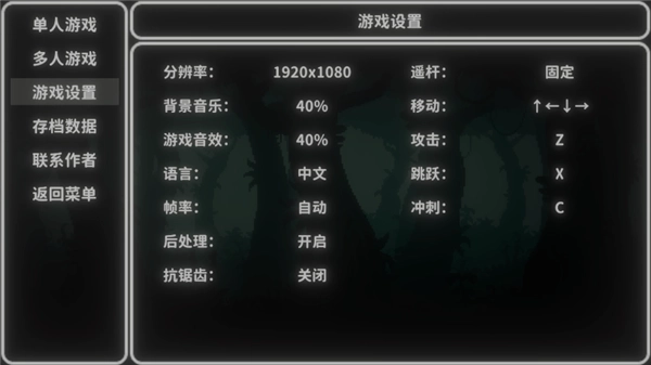 1.游戏打开游戏,游戏采用的事比较新奇的游戏画风,点击设置,里面可以调节分辨率,背景音乐,游戏音乐,语言等功能