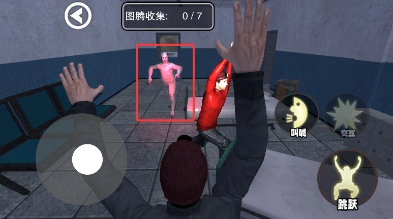 3、遭遇恐怖怪物时要立刻奔跑躲避,点击叫喊按钮能够暂时吓退追击的怪物。