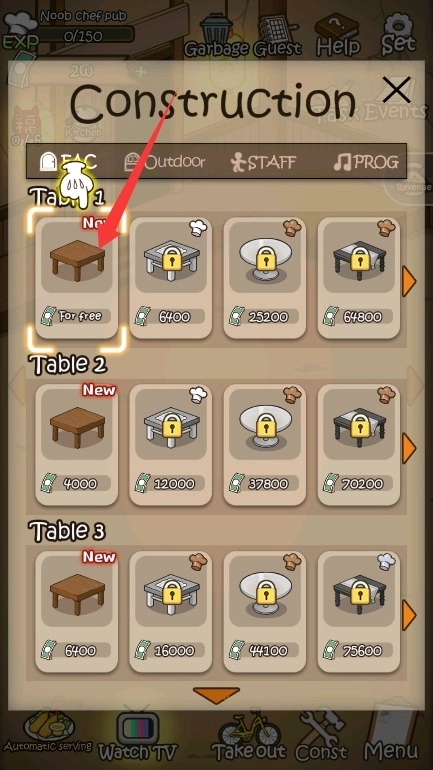 2、点击家具商店购买各种风格的座椅,合理摆放座位提升酒馆的整体容纳能力。