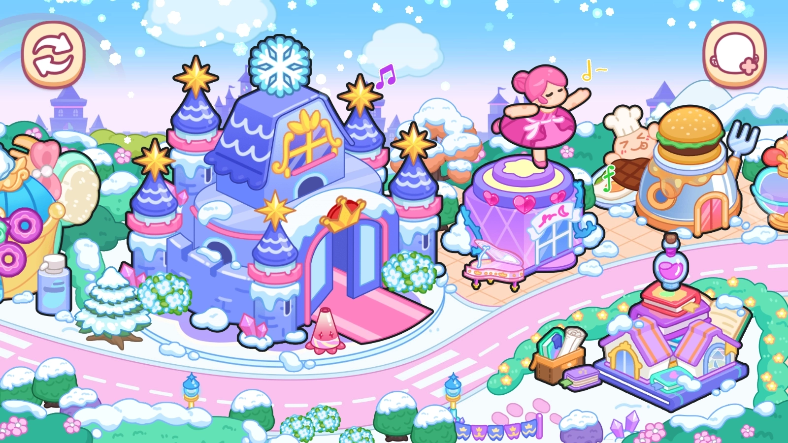 你是否曾幻想踏入公主的世界,亲身感受她们的生活日常?那你可找对地方啦!在艾拉打造的公主天地里,你就是备受宠爱的小公主!你拥有专属于自己的冰城堡,和艾尔莎公主那座宏伟的城堡如出一辙!除此之外,这里还有各式各样的建筑,像充满浪漫氛围的婚纱店、神秘的魔法学校、妙趣横生的游乐园、奢华的美容院等等。我们所有的小公主都能在这里尽情探索,无拘无束!
