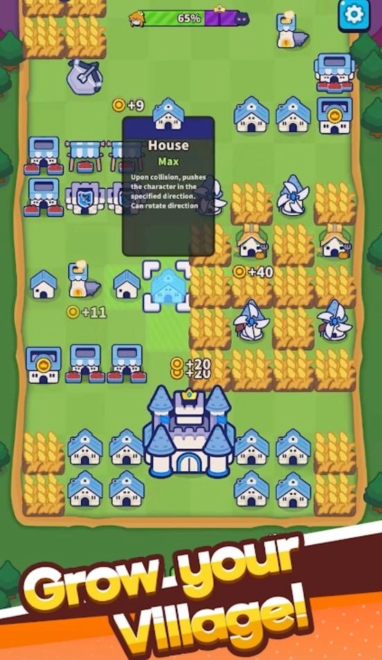 1、消耗黄金解锁并修建农田、风车、市场等基础设施,以此提高生产力并增加村民数量。