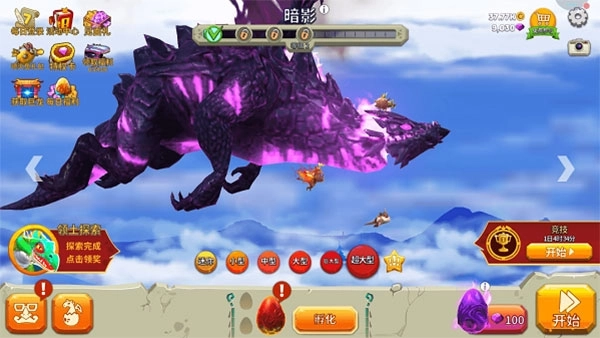 2、玩家一开始只有一条小龙,需要在天空中猎食来让它成长。游戏里的宠物得自己找蛋才能解锁,而龙则是等当前这条的生长度满了之后,用金币购买就能解锁下一条。