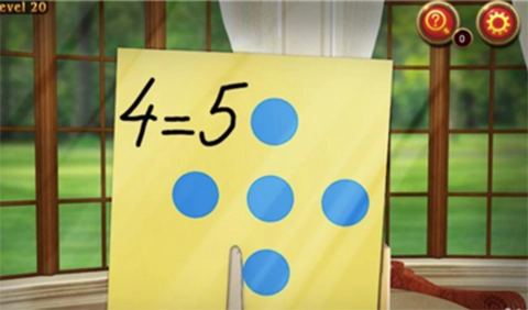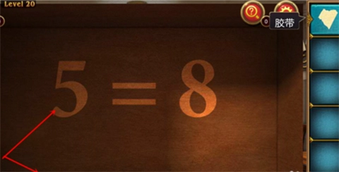 1、点击中间的桌子,获取胶带。点击左侧的纸签,再次点击以记录上面的数字提示“4=5”以及蓝色圆点提示。