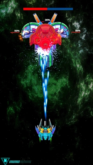 1、它打造出了沉浸式的任务体验与精美的关卡设计。你需要在入侵者一波波的进攻中不断推进,避开火箭袭击,同时收集道具来增强飞船的火力。