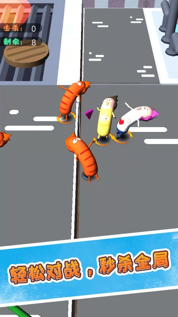 3.无论何时何地都能参与挑战,较量谁才是最厉害的香肠人,击败对手仅需一次点击即可。