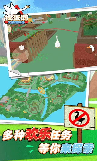 2、通过设计滑稽的动作和趣味十足的任务挑战,灵活操控你的鹅穿梭在公园的各个角落。