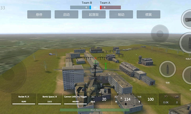 点击创建后就会开始加载,接着可以选择载具和炮弹,选好之后就能点击加入战斗了。屏幕上方中间的数字是战斗剩余时间,如果时间到了但你选择继续玩,数字就会变成负数。左右两侧是双方击毁的人数,左边是B方,右边是A方。带有绿色血条的是队友,红色血条或者不显示血条的是敌人(红色血条只有在瞄准敌人时才会出现)。