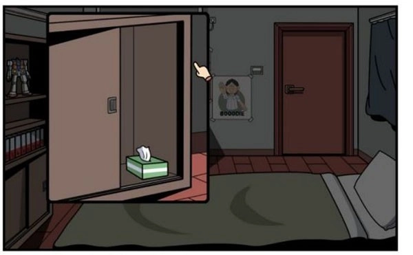 在离开房间前,记得拉开柜子的门,从中取出纸巾盒,然后从中抽取二十张纸巾,这样就能获得模型头部的零件A了。