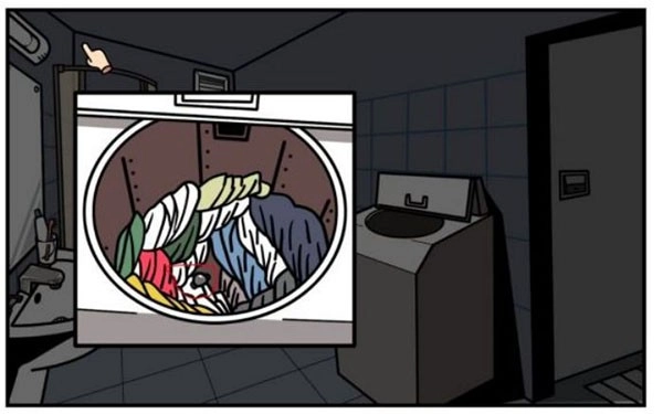 清洗双手后,我开始在房间各处探寻,从洗衣机和拖把桶里找到了头部的部件以及钱包。