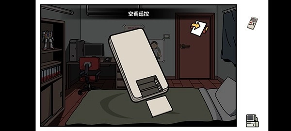 从书架上取来遥控器,在抽屉里找到电池装好后使用,就能关闭空调,系统还会自动存档。