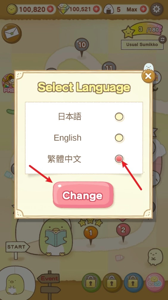 在列表里选中“繁体中文”选项,接着点击“change”按钮确认,界面语言就会马上切换成繁体中文。