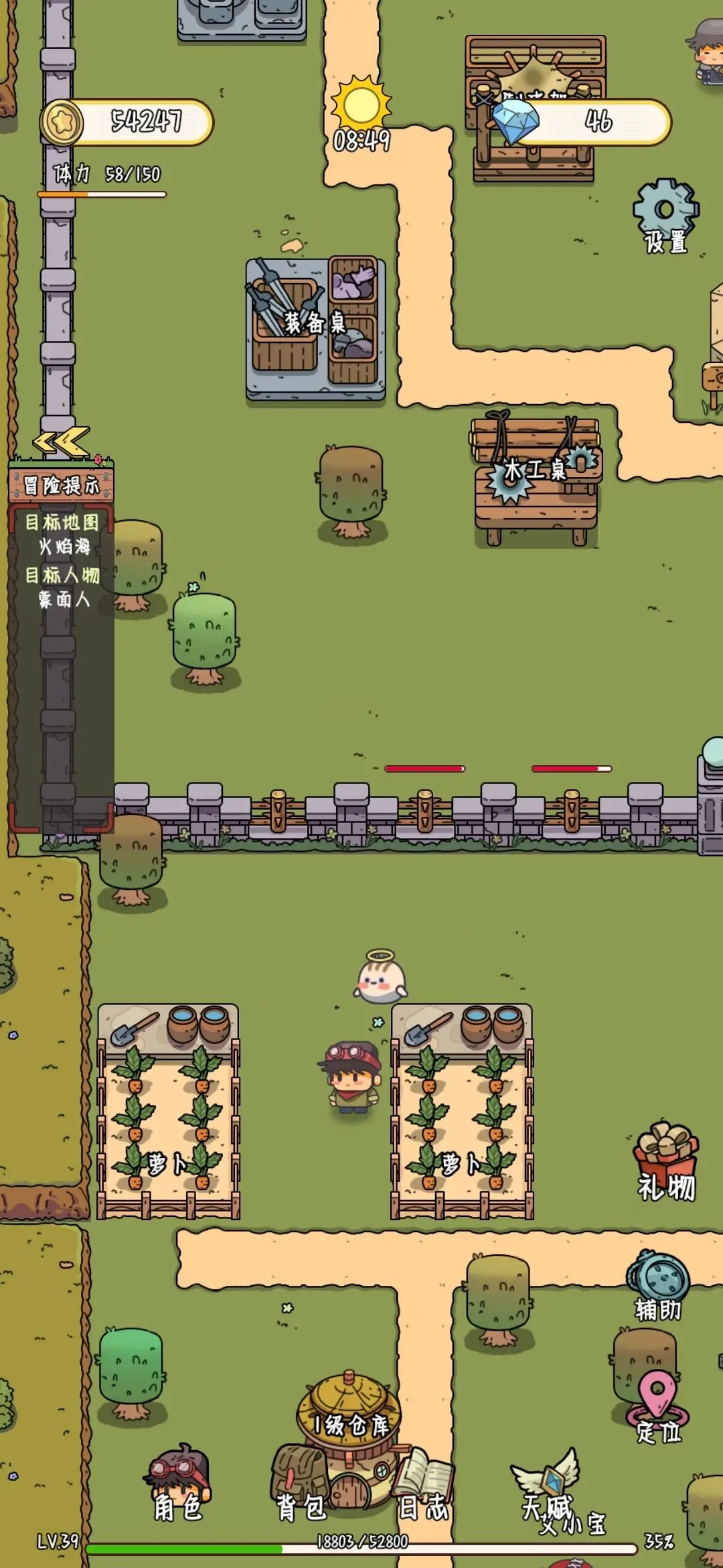 等天亮后,先把耕地里的作物收了再重新种上;接着去商店卖掉一部分种出来的东西(记得别全卖,留些自己用);之后去商人村卖掉昨晚砍的树,最后就去做任务。