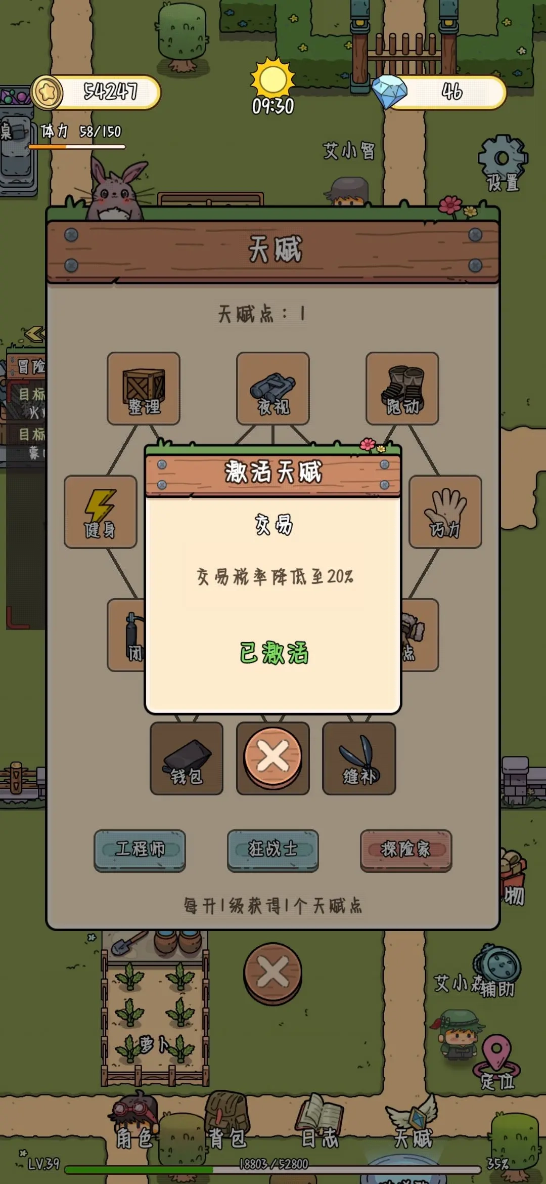 这里有个天赋挺关键的,前期可以先把交易这个天赋点了,这样卖东西的时候能多赚点钱。