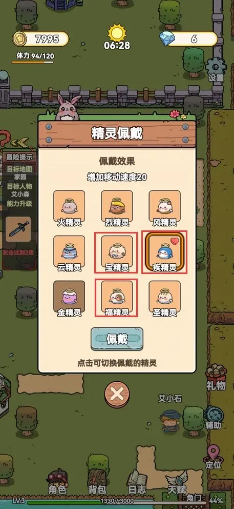宝精灵:打怪时有20%的概率掉落双倍奖励,在需要通过打怪获取材料时,建议携带它。
