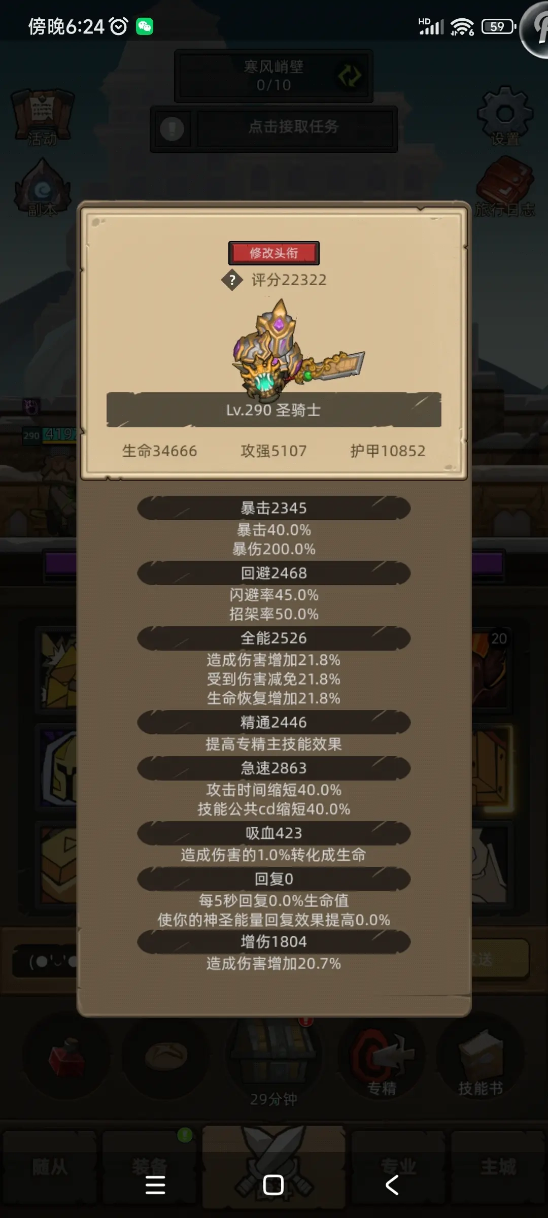 第一:防骑,属性如图所示,配置红剑红盾,后续会逐步把精通和闪避属性替换为全能增伤;以我当前的属性面板,无需借助任何药剂就能通过290史诗难度,且全程零翻车风险。