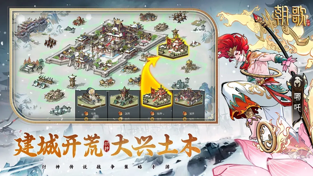 在《朝歌》这款游戏里,玩家将置身于一个极具挑战性的策略战场。游戏以封神榜故事为背景,融入SLG玩法元素,让玩家在紧张刺激的攻城略地过程中,感受战争的残酷与策略博弈的乐趣。从种族的挑选到阵容的组建,从法术的组合搭配到战术的规划布局,每一处细节都在考验玩家的决策智慧。这里没有浮夸的修饰,只有真刀真枪的策略对决。无论你是初入战场的新手,还是久经沙场的老手,都能在这片古老神秘的土地上,寻觅到专属自己的战场,谱写独属于自己的传奇篇章。