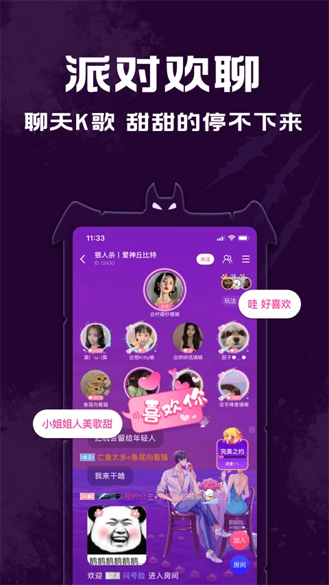 随时组队开黑,浪漫嗨歌对唱,趣味恶搞游戏,你想要的我们这里全都有。