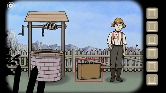进入关卡后,先大致扫视了一下周围环境,看到场景里有一口水井、一只小狗、一个洒水壶和一个行李箱。出于人类天生的好奇心,我首先点击了那个行李箱,结果发现它上面有个三位数的密码锁。