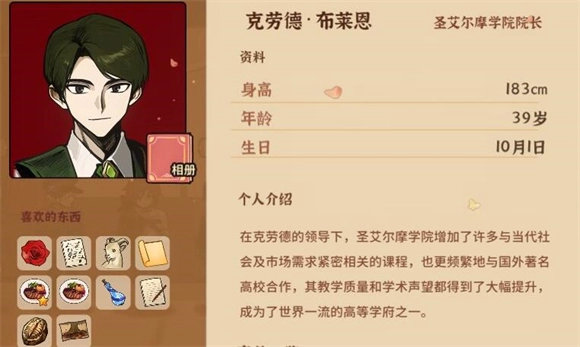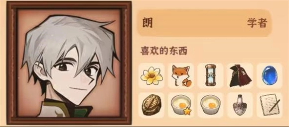 朗喜爱的物品包括金色兰花、金色沙漏、骑士长袍、小狐狸、蓝色宝石蛋、史前化石、奶油焗蛋、鬼蘑菇药剂以及《巨龙图志》。