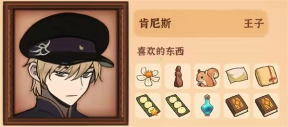 肯尼斯喜爱的物品包括野花、火山女神雕像、便携枕头、香香的毛巾、松鼠、仙人萝卜团子、吐真剂、《大怪物绘本》以及《独角兽绘本》。