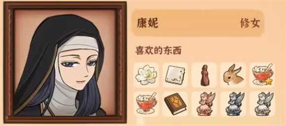 妮娜喜爱的物品包括勿忘我、火山女神木雕、唱诗班乐谱集、小熊猫、莫娜肖像、葡萄果酱、吐真剂和《占卜的起源》。
