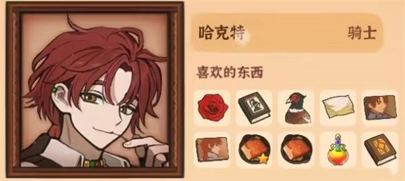 哈克特喜爱的物品包括红玫瑰、《优秀骑士手册》、便携枕头、野鸡、哈克特肖像、香喷喷烤鱼、人类的知识以及《斗鸡八法》。
