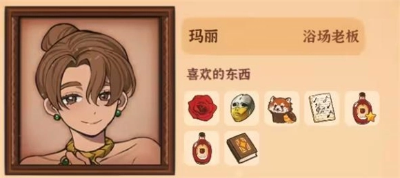玛丽喜爱的物品包括红玫瑰、唱诗班乐谱集、小熊猫、金面具、香醇野莓酒以及《掷骰秘诀》。