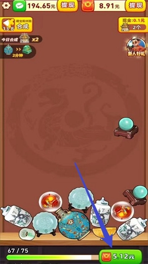 游戏设有红包奖励机制,新人刚进入游戏时,只要合成出藏宝阁就能拿到0.12元的红包,这种能立刻获得的奖励可以调动玩家的参与热情。