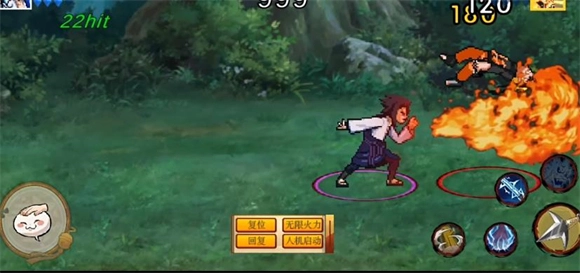 普通攻击一共有五段,第一段是拳击,第二段用刀进行顶击,第三段会位移并斩击,第四段是飞踢,第五段则使用火遁。