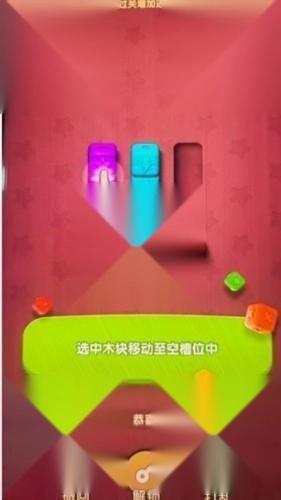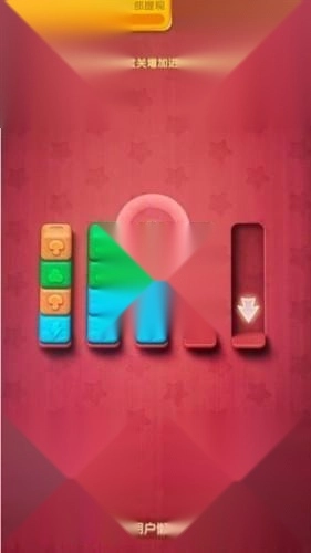 3、持续进行闯关挑战,把更多相同颜色的木块放入同一个槽中,最终顺利通过关卡。
