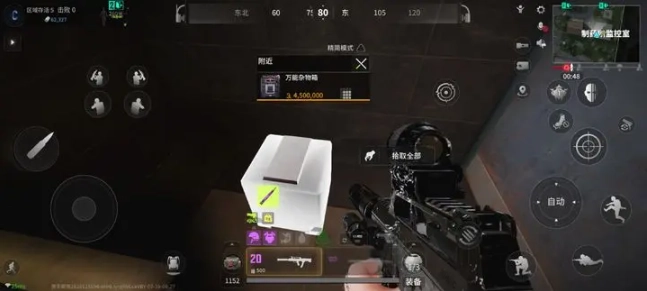 1、开局选择1号复活点,这个位置距离监控室比较近,接着前往监控室把大杂妥善藏好,在监控室楼下放置一个探测球后,就能进行全图范围的物资搜索了。
