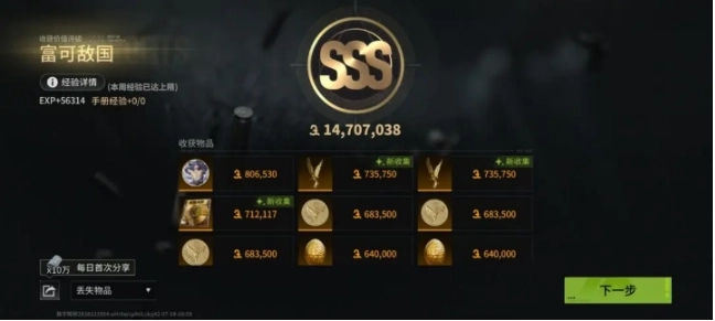 5、第一波开始造成持续伤害的风暴可以用针剂或药品扛过去,后续的风暴掉分会变得特别快,得频繁打药,不太建议硬扛太久。运气好的话单人能带着两千万撤离,运气差的话就像我这把一样,大概只有一千四百万左右。