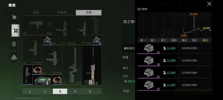3、寄卖价格在周一处于最低水平,周四至周日则达到最高。若对铁零件有大量需求,且寄卖市场难以买到,可考虑以合理价格购买箱子开启,不局限于旧铁箱。